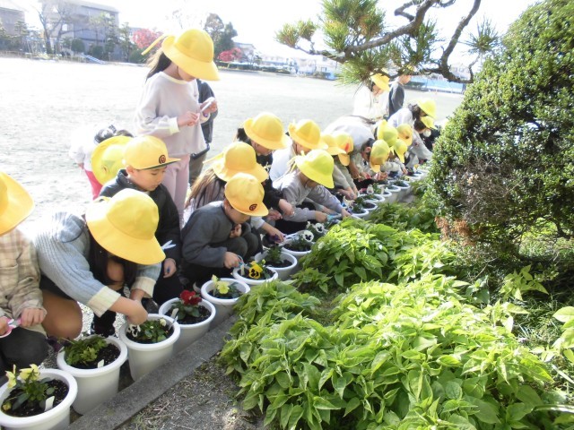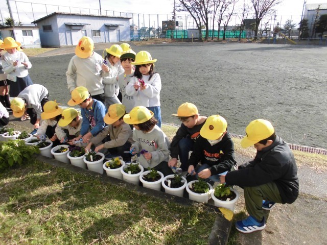 一人一鉢のパンジーの花を、3月に合わせて美しく咲いてもらうために摘むことにしました。とてもきれいに咲いている花が多く、みんな「えっ?取っちゃうの?」「なんかかわいそう😢」という反応だったので、せっかくなら押し花にしてみようと計画しました。ちょっと厚みがあるので、うまくいくかどうか・・・といったところですが、みんなで挑戦しました。冬休み前ぐらいには、きれいに仕上がるといいなあと、みんなでワクワクしています。