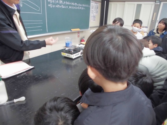 理科の授業で「ものの温まり方」について学習しています。先週は金属、今日は水の温まり方を実験して調べました。安全に気をつけて、実験用具を正しく使うことができました。