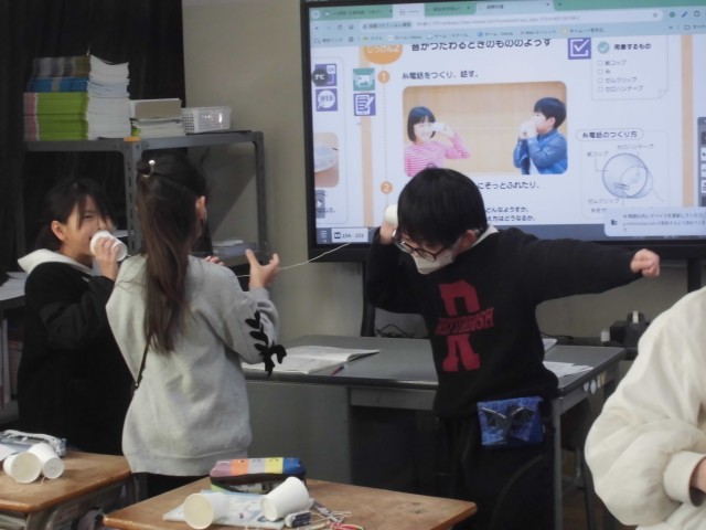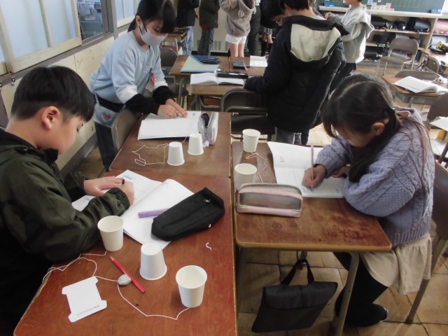 12月15日(月)3年生 糸電話を使って音の実験をしました