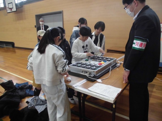 今日は、一宮警察署の方にもおこしいただき、屋内運動場で、西成連区交通安全会主催の交通安全教室が行われました。多くの児童や地域の方が参加して、とても賑やかでした。12月は交通事故が多くなる時期ですので、冬休み中に児童が交通事故に合わないように願っています。