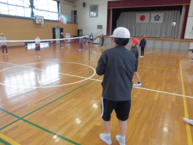 体育の授業でソフトバレーボールを行いました。今日は、長くラリーが続くことを目標にして、パスの練習を中心に行いました。ボールを弾いて返すのに苦戦しながらも、声をかけあってラリーを続けることができました。
