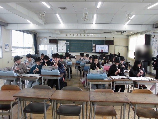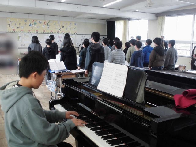 学校公開の様子です。2組は、音楽の授業に一年間のまとめの発表会をしました。これまで頑張って練習してきた歌や楽器の演奏を披露し、立派に成長した姿を見てもらいました。