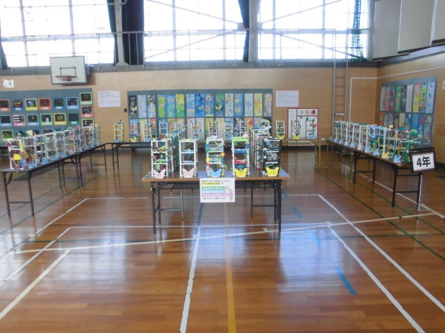 体育館で行われている作品展にも、たくさんの保護者の方に見ていただき、ありがとうございました。