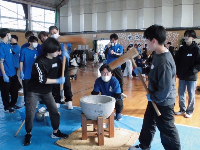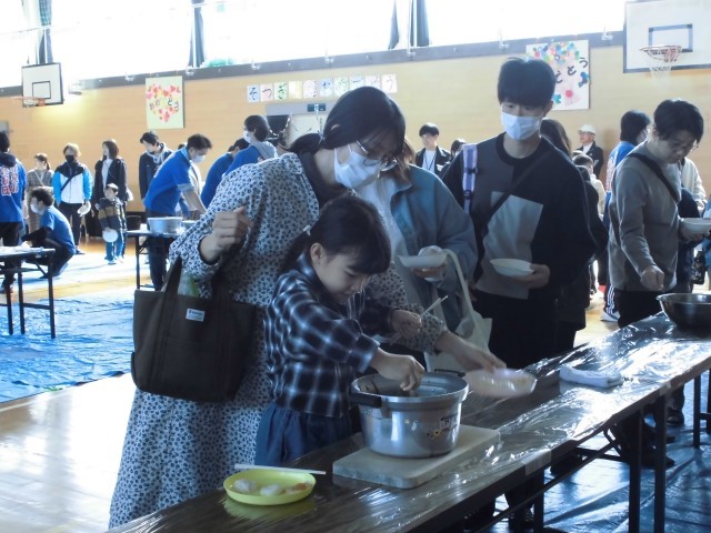 本日午前11時より、赤見小応援団主催の「もちつき体験」を行いました。児童・保護者をふくめ、事前に申し込みをされた210名以上の方のご参加がありました。親子でもちつき体験をしたり、つきたてのもちをいろいろな味で食べてみたりと、多くの参加者が笑顔で過ごす温かなひとときとなりました。