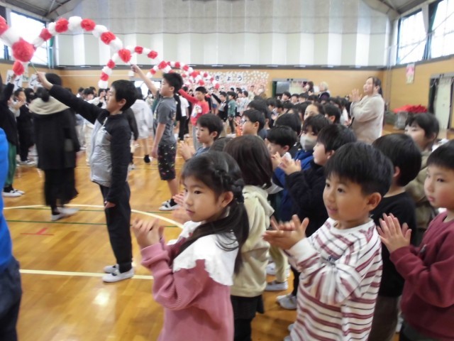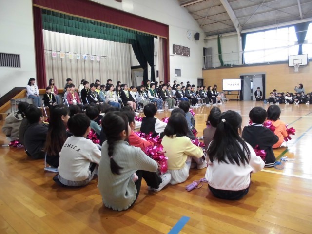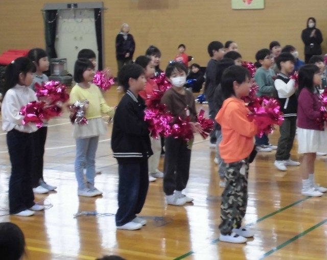 卒業生を送る会がありました。たくさんお世話になった6年生に向けて、一生懸命言葉を言ったり歌を歌ったりしました。歌に合わせて、ポンポンを動かしてかわいく踊ることもできました。