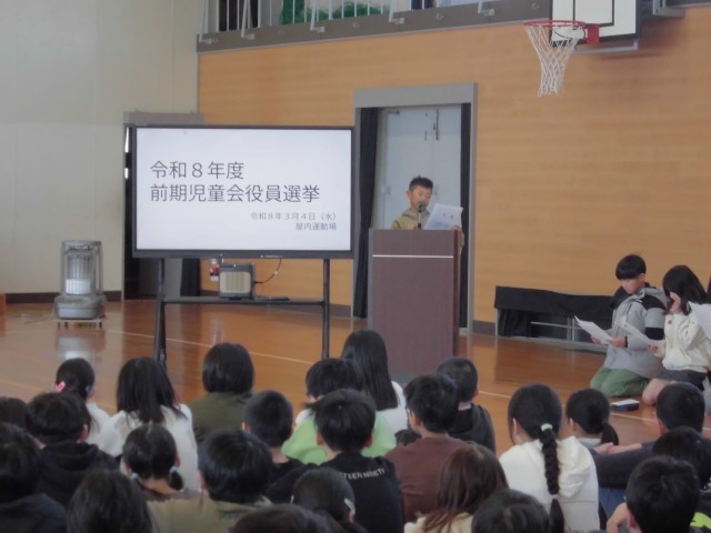 令和8年度前期児童会役員選挙の立会演説会および投票を3時間目に行いました。4年生からは、3名が立候補しました。また、選挙管理委員として、立会演説会の司会や投票の進行を行いました。高学年に向け、学校全体のために活躍する機会が増えてきました。