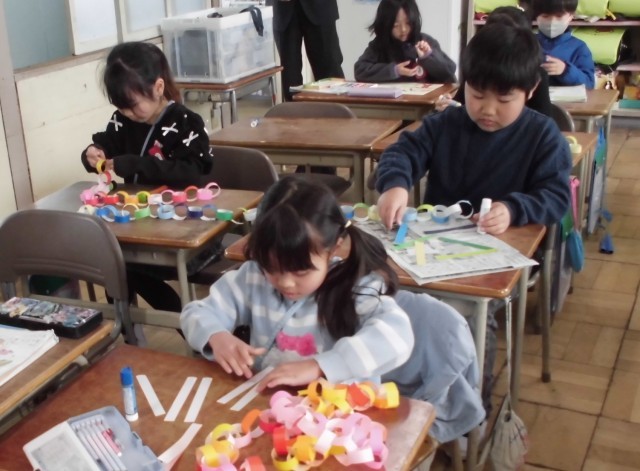 3月6日(金)1年生 輪飾りを作ったよ