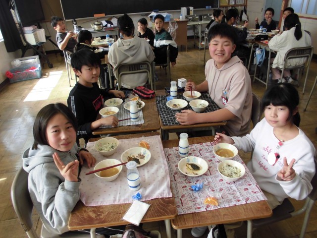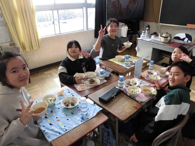また、感染症対策の影響でしばらく控えていた「会食デー」が、ようやく実施できました。久しぶりに友達と向き合い、会話を楽しみながら食べる給食は、いつにも増しておいしく感じられたようです。教室中に広がる明るい笑い声と、おいしそうに頬張る子どもたちの姿に、日常の大切さを改めて実感するひとときとなりました。