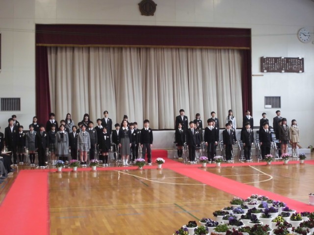 本日は卒業式が行われました。卒業式では、万感の思いをこめて卒業証書授与の返事や呼びかけ、合唱を立派にやり遂げることができました。これまで支えていただいた全ての方への感謝の気持ちを表すことができたと思います。小学校での思い出を胸に、中学校へ進学してもがんばってくれることを期待しています。