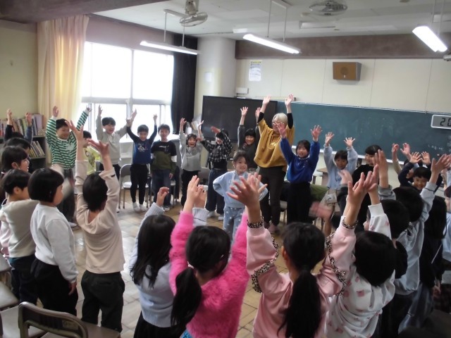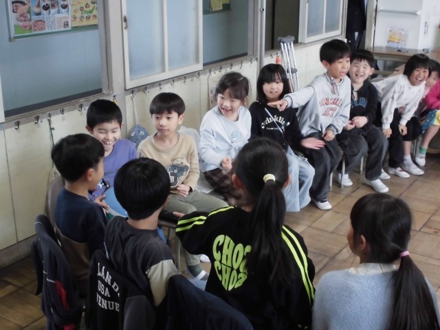 今日は、3学期のお楽しみ会をしました。屋運や外では、「歩き冷凍バナナおにご」「ドッジボール」「かくれんぼ」、教室では「ばくだんゲーム(なぜか一発芸大会)」「リーダー探し」「宝探し」をして楽しみました。ルールを自分達で考えて進められたゲームもあり、やってもらうことの方が多かった4月の頃とは打って変わって、一人一人成長してきた様子がうかがえました。お楽しみ会以外にも、今日は、写真の裏に寄せ書きをしたり、金のメダルを作ったりと、お楽しみたくさんの1日でした(^^♪
