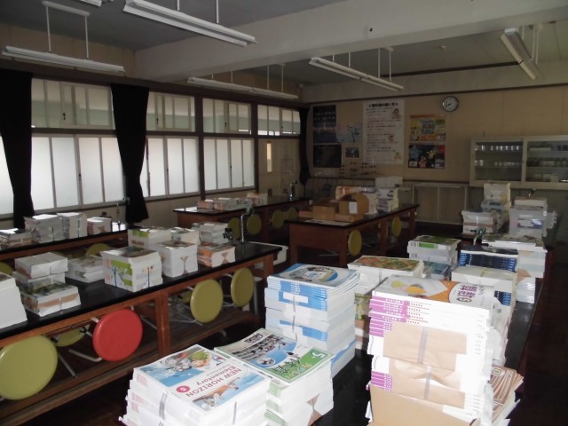 新しい学年で使う教科書が届きました。教科書たちも、進級した赤見っ子たちに使ってもらうのを、今か今かと楽しみに待っています。