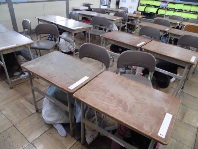 避難訓練では、身を守る姿勢を覚え、放送を聞いて素早く机の下にもぐって安全を確保することができました。毎日たくさんのことを一生懸命覚えてがんばっています。