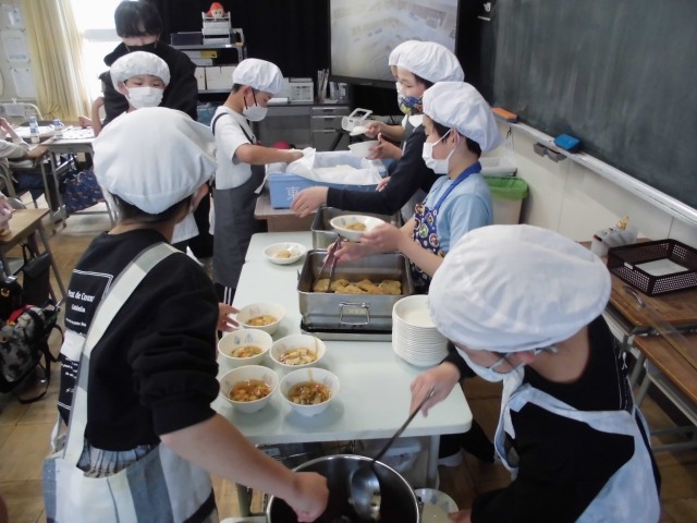 今日は「だしを味わう日」です。今日の「湯葉のすまし汁」には、かつお節からとっただしを使っています。和食では、魚やこんぶ、しいたけなどを組み合わせたさまざまな風味のだしを料理に合わせて使います。だしを使うことで料理の味に深みやコクが出て、おいしくなります。