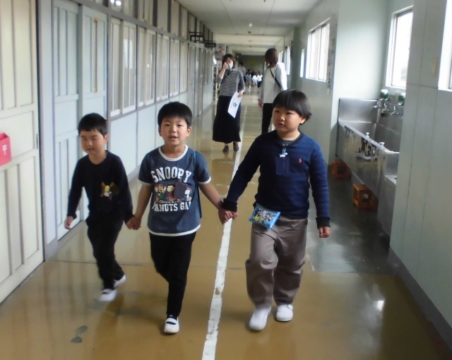 昨日は、1年生のなかよしペアと一緒に、校内巡りをしました。ちょっぴりお兄さん・お姉さん気分で優しく話しかけたり、ゆっくり歩いてあげたりする姿は、とても微笑ましいものでした。今日は、反対に、4年生のお兄さん・お姉さんとのペア顔合わせの日でした。ちょっと緊張しながらも笑顔で自己紹介をしている様子に、今年のペア遊びを楽しみにしていることが伝わってきました。学年をこえて、友達の輪が広がると素敵ですね。