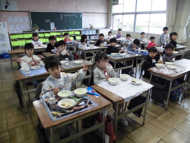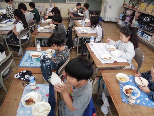 てりどりは給食で人気の料理の一つです。給食のてりどりのおいしさの秘密は、下味と最後にかける甘辛いたれです。まず、とり肉にしょうゆ、酒、しょうがで下味を付けて焼き、しょうゆ、みりん、さとうを煮詰めて作ったたれをかけています。よくかんで味わって食べましょう。