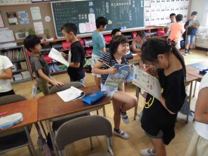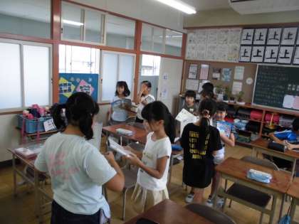 好きな食べ物は?好きな色は?好きな授業は?と尋ね、楽しみながら英語に触れることができました。