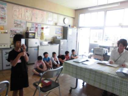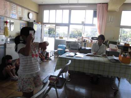視力検査を行いました。「よく見えていますよ」と、保健の先生に言われて、にっこりして終えました。