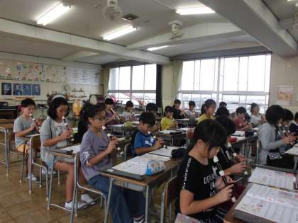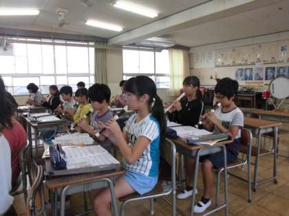 「よろこびの歌」をリコーダーで演奏しました。♭シの指使いに気をつけて演奏しました。その次は、ブレスについても気をつけました。先生から「まだちょっと、時々『ピー』ってなるね」と言われ、また一所懸命に取り組みました。