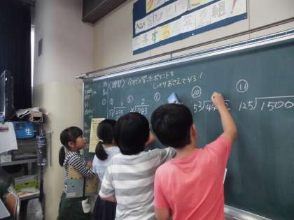 「筆算、苦手なの」。そう言っていた子も、一生懸命に割り算の筆算の問題に取り組みました。『たてて、かけて、ひいて、おろして』に真剣に取り組みました。