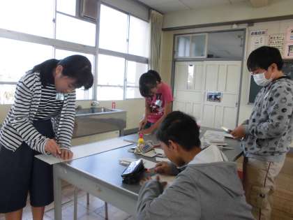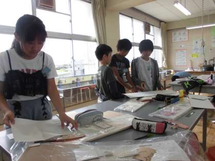 一枚の板から作るものを決め、厚紙の台紙を切り、木取をしてから木を切り分け始めました。友達同士で作業を助け合ったり、確かめ合ったりしながら一生懸命に取り組みました。