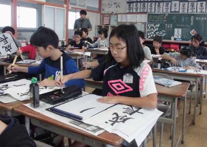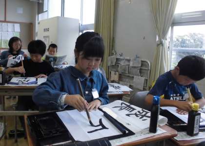 「成長」を清書しました。正しい筆順で、筆を入れる位置、止める位置等に気をつけて書き上げました。
