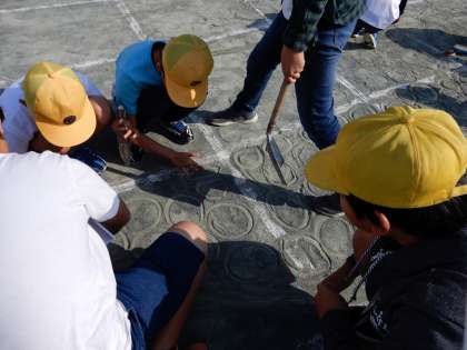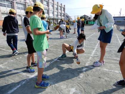 6年生で協力をして大仏を描きました。グループで話し合って、細かなところを上手につなげあわせて仕上げました。修学旅行当日は、自分の目で見て実際の大きさを確かめていきたいと思います。