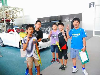 実際に自動車を造る機械を動かしてみたり、初めて作られた豊田の自動車を見学してみたりと、初めて見るものばかりで子供たちはとても楽しそうに見学していました。