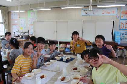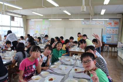 いつもおいしい給食を作ってくださるセンターの方にも感謝の気持ちをもっていただきました。みんないい笑顔です!