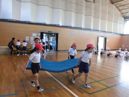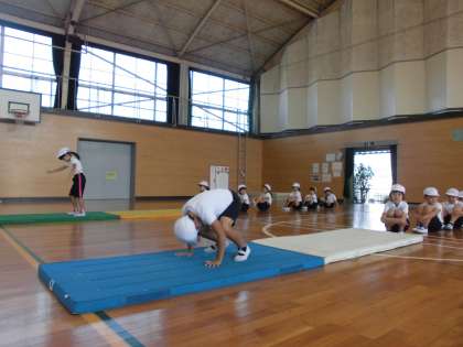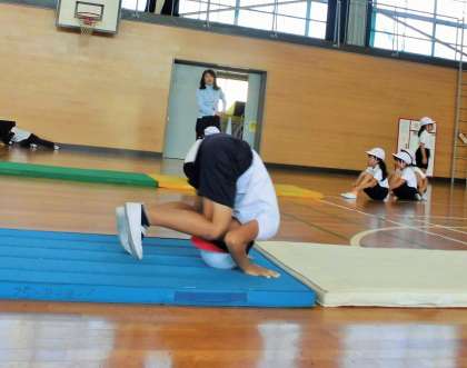 マット運動最後の授業でした。マットを協力して運ぶことも上手にできるようになりました。前回りも後ろ回りも、手のひらをしっかりと付けてできるようになりました。決めポーズもかっこよくできました。
