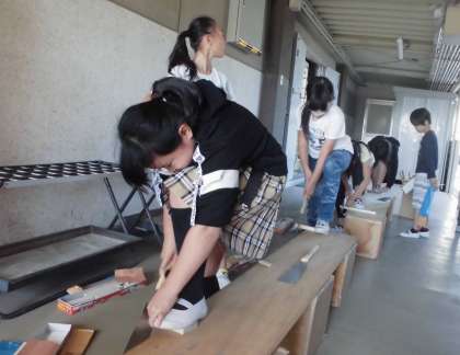 10月22日(月)のこぎりでギコギコ(4年生) 公開日 2018/10/22 更新日 2018/10/22 4年 設計図通りに板をのこぎりで切りました。足と手でしっかり板を押さえ、注意深くギコギコ。慎重に慎重に切り落としました。