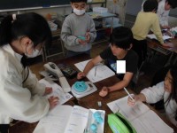 算数に授業で、kg(キログラム)について学習しています。今日は、1kg体感し、身近のもので1kgを作ってみました。さらに、お友だちと協力しいろいろなものを量るのに、重さを予想し、何キログラムのはかりを使うとよいのかを学習しました。「ピッタリ!」「重かった!残念!」など、楽しそうでした。