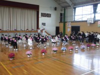 給食の準備の様子です。1年生も配膳が上手にできるようになりました。今日の献立は、お味噌汁とお魚です。