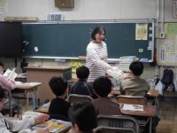 2時間目に避難訓練を行いました。今回は消防署の方にも来ていただき、消火器の使い方や煙の中からの避難の仕方を教えていただきました。