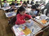 さつまいもの苗を植えました。土に穴をあけた後、苗を寝かして入れて、土をかぶせました。しっかり根付くように水やりをしました。大きなさつまいもができるのを楽しみにしている1年生でした。