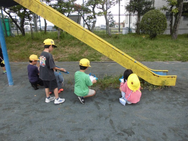 校庭で見つけた秋をカードにかきました。「オンブバッタがいたよ」「この黄色い花の名前は何?」などとみんなで話しながら、一生懸命秋を見つけました。夏にたくさん咲いていたクローバーの花が、ほとんど見られな...