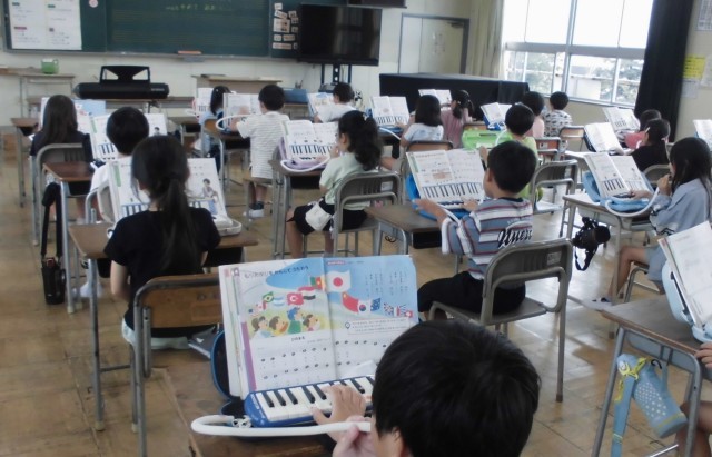 音楽の時間に、鍵盤ハーモニカの練習をしました。今までは、ドの音だけ使っていましたが、今日は、ドレミの3つの音を使って曲を演奏しました。音によって指が違うのですが、やりやすい指を使ってしまう子もいまし...