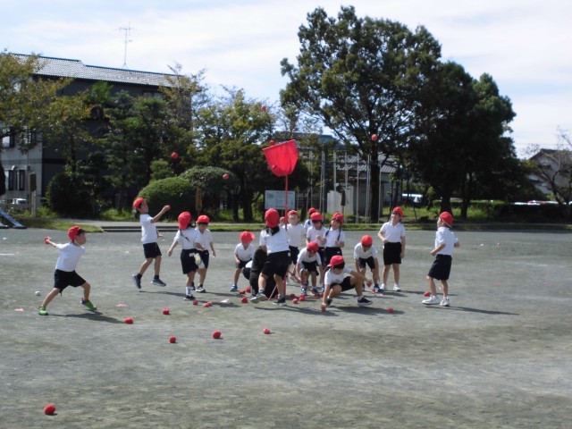 今日の体育は、みんなが楽しみにしている玉入れの練習をしました。一目散に走り、急いで玉を拾っては投げ、拾っては投げ・・・とっても楽しそうでした。今日は練習ということもあり、ちょっと低めの設定でしたが、...