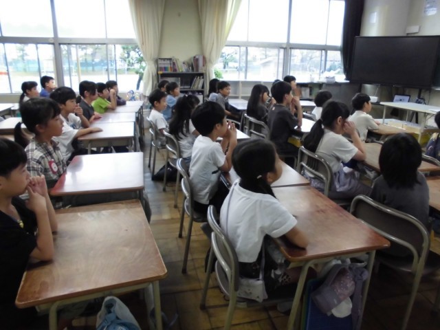 ボランティアの方に、読み聞かせをしていただきました。国語で学習している大豆に関するお話や、パンダの柄が変わっていくお話をしていただきました。子供たちは、興味津々で楽しんで聞くことができました。