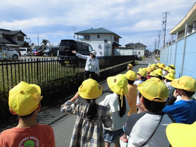 秋らしいものを探すために、学校の周りを歩きました。田んぼには、稲がたわわに実っていました。また、柿の木に、オレンジ色の実がなっていたり、コスモスの花がきれいに咲いていたりしました。ススキ、ジュズダマ...