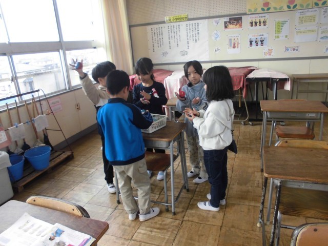 音楽の時間に、シンバル、カスタネット、タンブリン、すず、トライアングルの鳴らし方を工夫して、いろいろな音を出すことに挑戦しました。鳴らした音の中からお気に入りの音を見つけて、今度の音楽の時間に音のリ...
