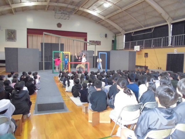 劇団「風の子中部」の方々にお越しいただき、「ギャングエイジ」という劇を観ました。おもしろい演出がたくさんあり、多くの笑顔が見られました。ぜひご家庭でも感想を聞いていただけたらと思います。