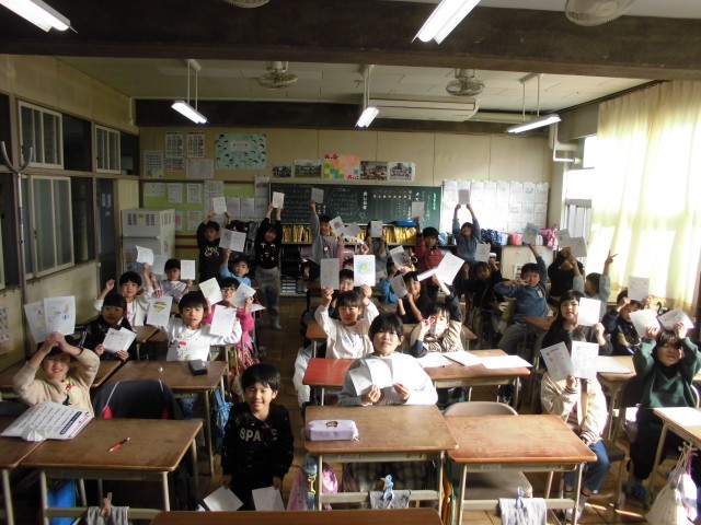 読書週間だったので、ペア学年のお兄さん・お姉さんからおすすめの本のお手紙をもらいました。「ありがとう」の気持ちをこめて、笑顔でパチリ。本を通しての、心の交流がほっこりさせてくれました!(^^)!