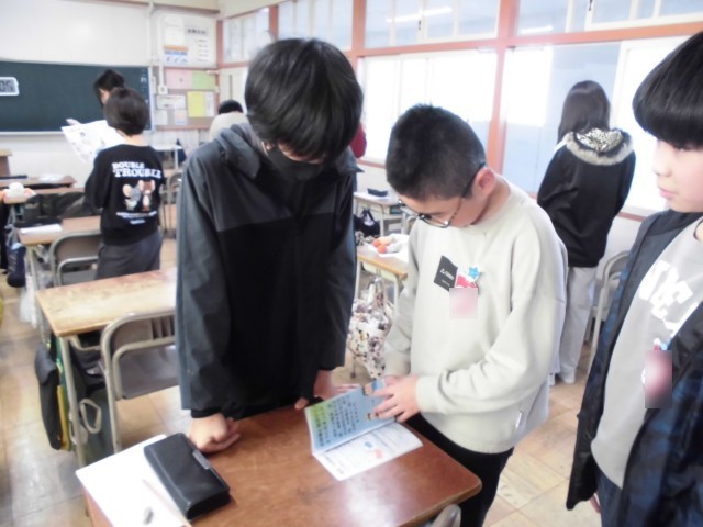 総合的な学習の時間に、日本の文化を調べ、タブレットを使ってリーフレットにまとめました。今日は、完成したリーフレットを読み、感想を伝え合いました。
