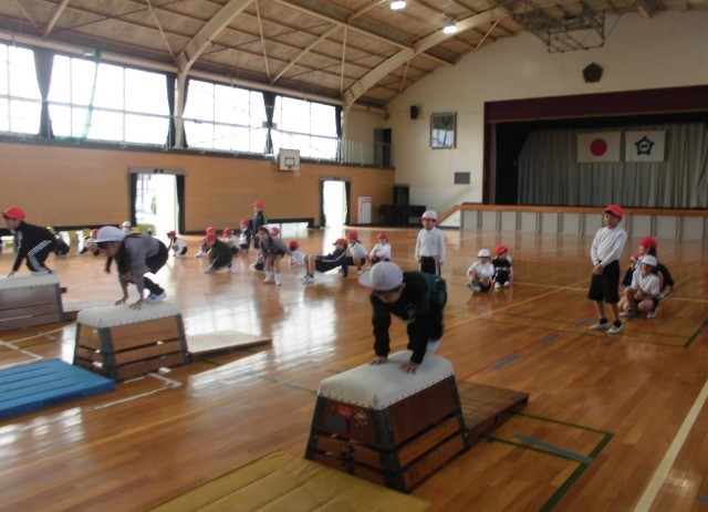 体育の時間に、小学生になって初めての跳び箱運動をしました。跳び箱の使い方の話を聞いた後、踏み越し跳びの練習をしました。両足で踏み切って、手のひらを開いて跳び箱について、跳び箱の上にジャンプして乗りま...