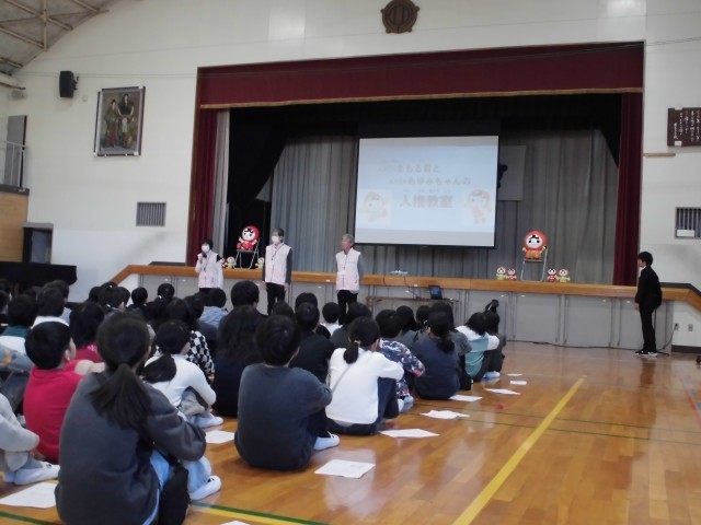 5時間目に、人権教室がありました。人権に関するビデオを見たり詩を読んだりして、人権について考えました。「見て見ぬふりをしない」「勇気を出して大人に相談する」など、大切なことを学ぶことができました。