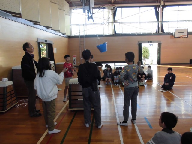今日の理科では、体育館で約7mの大きなふりこを使った実験を行いました。 全員でふりこの様子を観察し、ふりこの1往復する時間はふりこの長さに依存することを感じることができました。