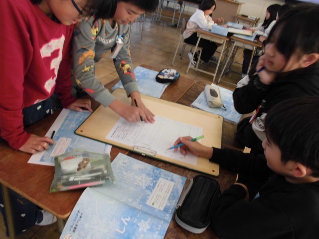 音楽では、声の表現を工夫して、「しん」という言葉を使って「ゆき」の情景を表現をしました。グループで声の重ね方や強弱、発表するときの立ち位置を工夫して、自分たちが思い浮かべる雪の様子を表現することがで...