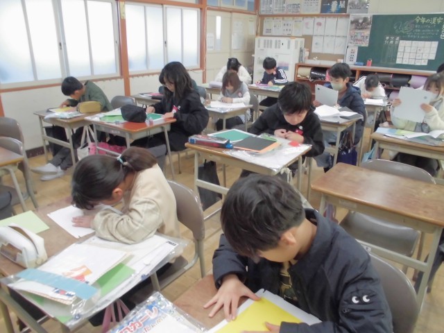理科では、電磁石の学習をしています。自分で導線を巻いてつくったコイルが電磁石になっているかを、クリップを使って確かめました。クリップが電磁石に20個~30個ほどついている児童がいて驚きました。 国語...