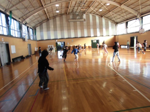 2学期のおたのしみ会をしました。3時間目は、屋内運動場で「どろけい」と「ドッジビー」をしました。みんなたくさん体を動かして楽しく遊ぶことができました。4時間目は、教室で「いす取りゲーム」「ばくだんゲ...