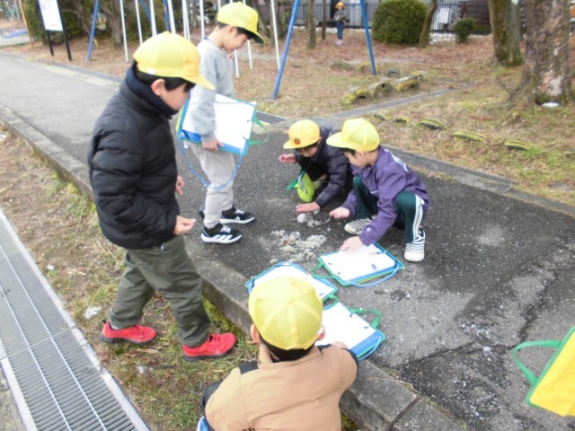 先日たくさん雪が降ったので、まだ少し校庭に雪や氷が残っているうちに冬見つけに出かけました。ほんの少しの雪でも、みんな大喜び!最初はひとしきり、ちょこっとだけ残っている雪や氷を触ったり踏んだりしていま...